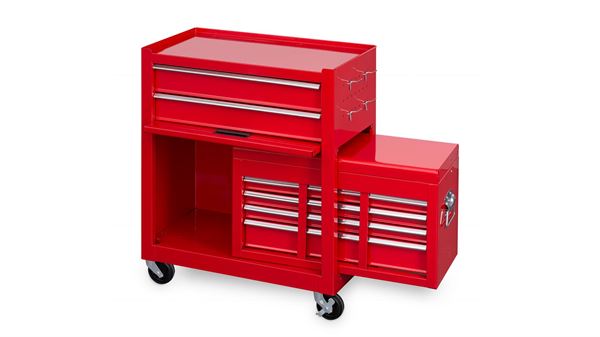 Værktøjsvogn med 8 skuffer og 4 kroge til opbeværing af dit værktøj, den øverste værktøjskasse er aftagelig.